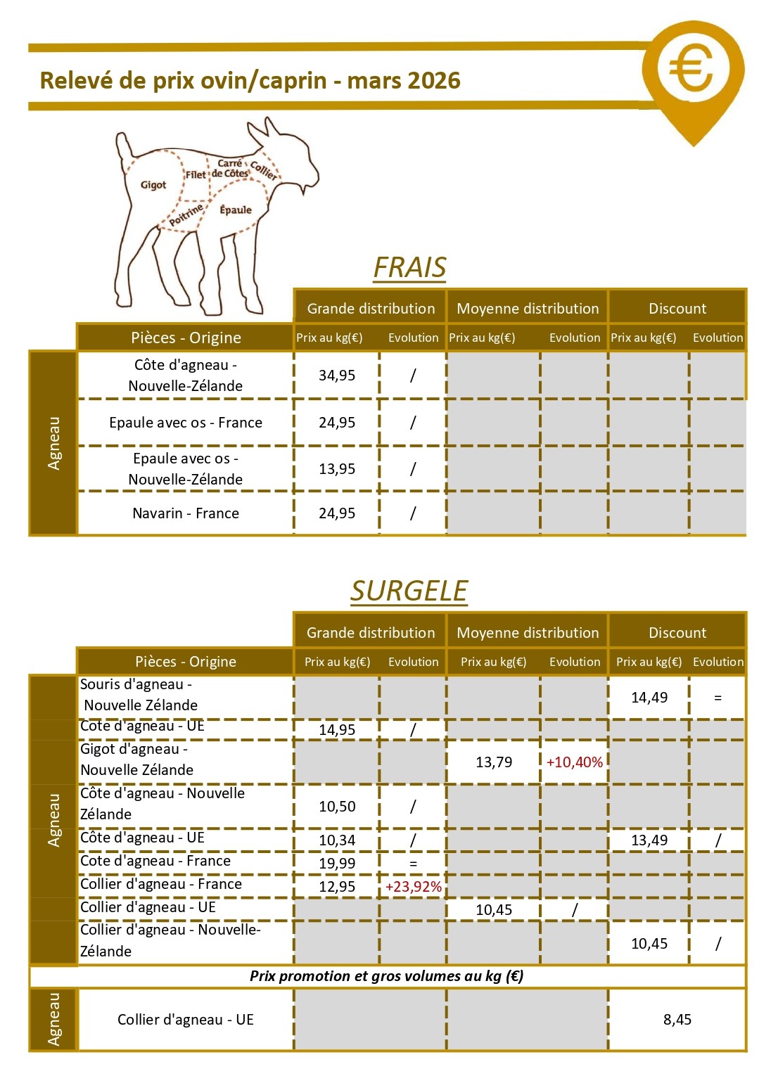Evolution des prix par rapport au dernier relevé effectué en décembre 2025.