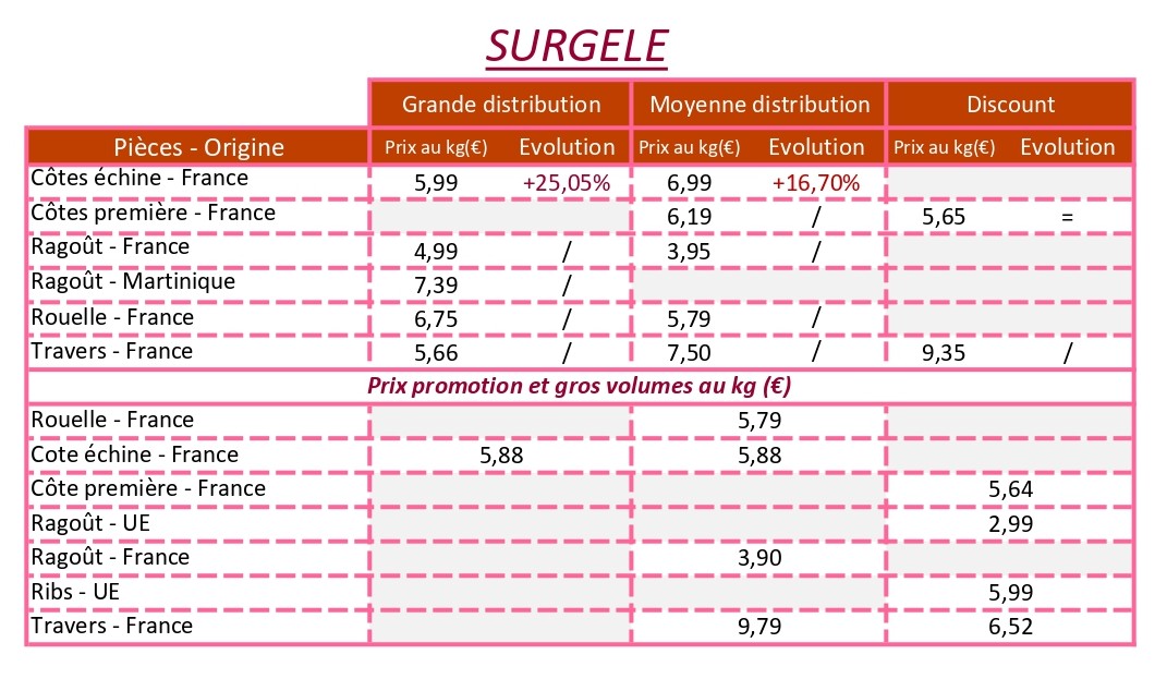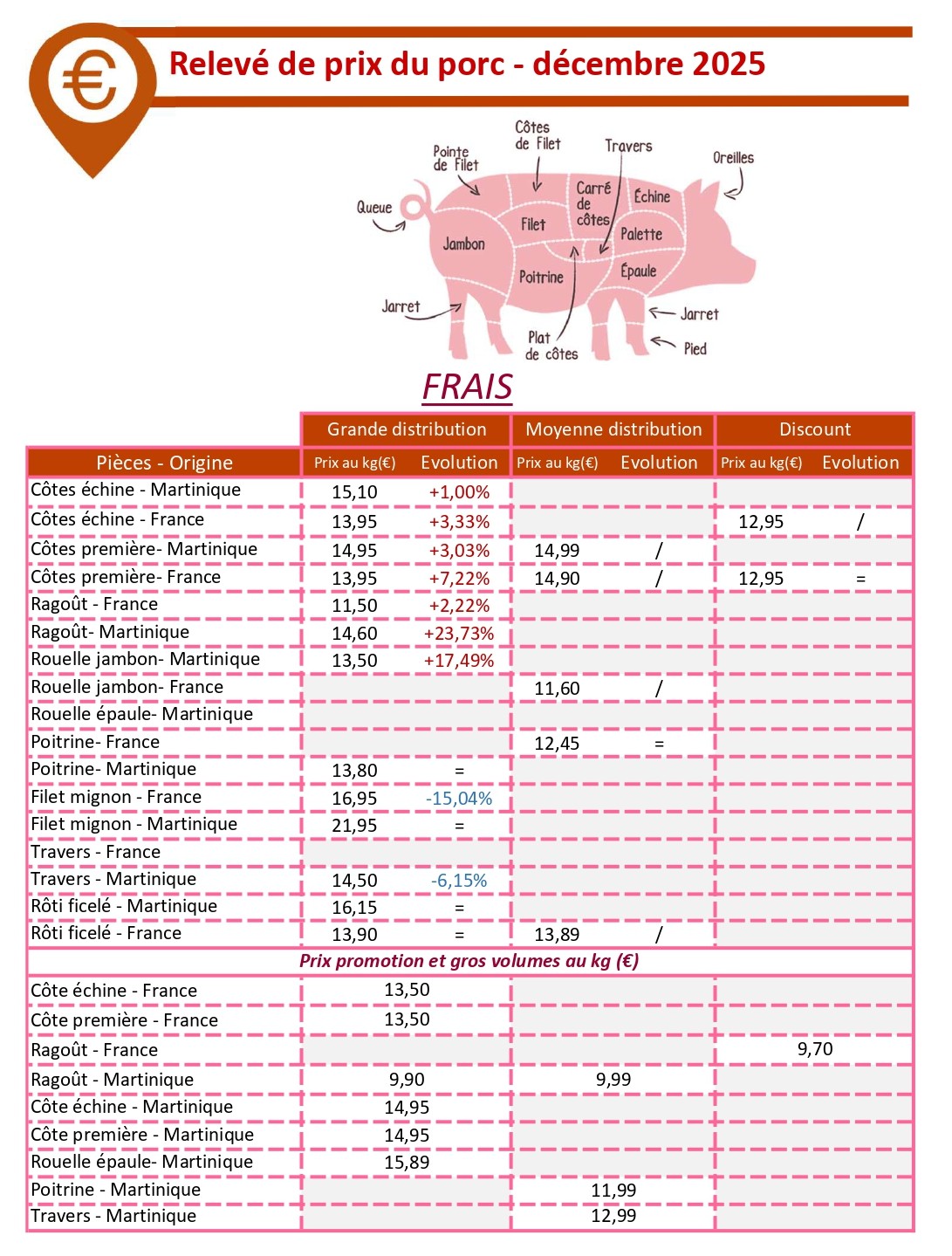 Evolution des prix par rapport au dernier relevé effectué en septembre 2025.
